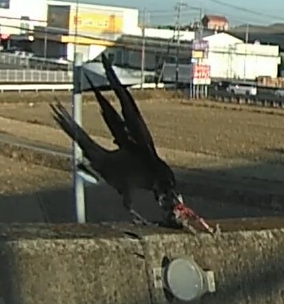 一瞬であったのではっきりとカラスを食べていたと断言できないが、カラスのように見えた。